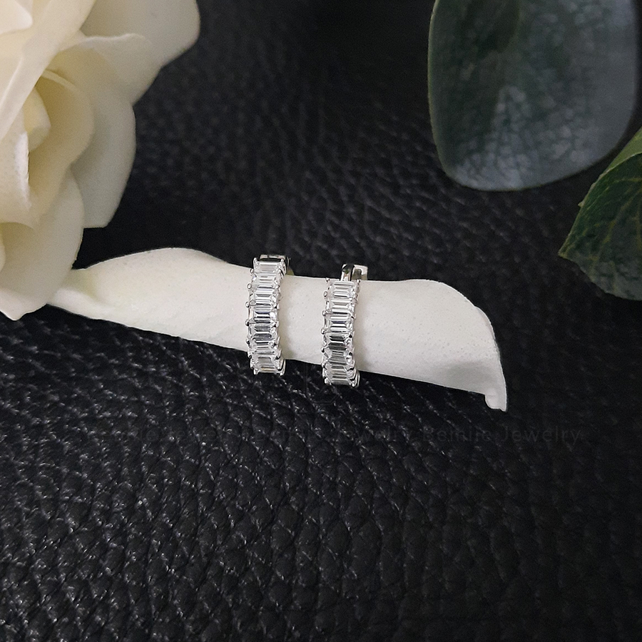 Bông Tai Kim Cương Moissanite Baguette Huggie Hoop thiết kế tại Bemiie Jewelry