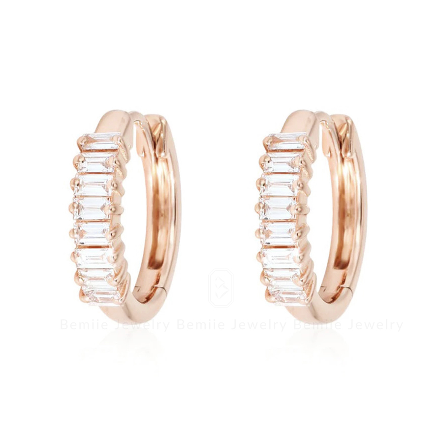 Bông Tai Kim Cương Moissanite Baguette Huggie Hoop thiết kế tại Bemiie Jewelry