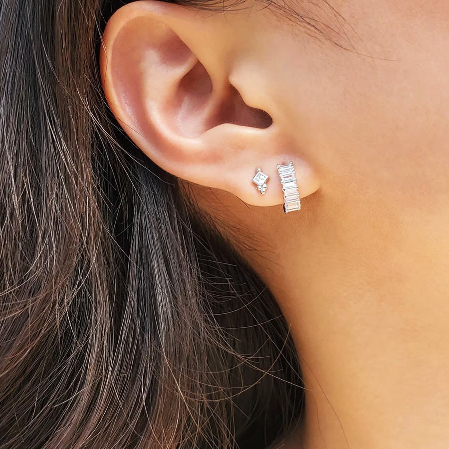 Nàng có thể diện Bông Tai Kim Cương Moissanite Baguette Huggie Hoop mọi lúc mọi nơi, từ các hoạt động thường nhật, công sở hay đi dạo phố…