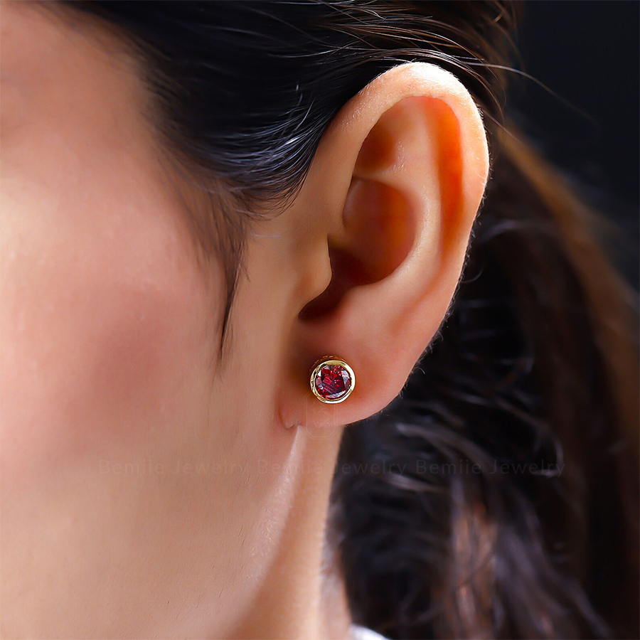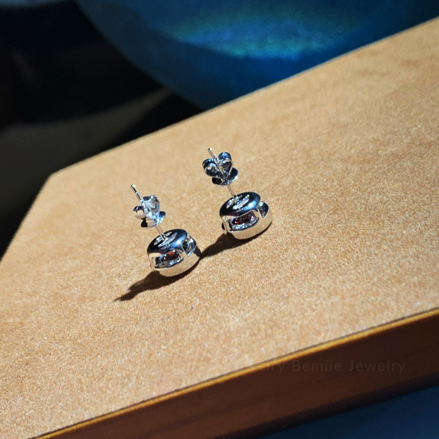 Bông Tai Kim Cương Moissanite Round Bezel Stub EBJRERS6.5BZ