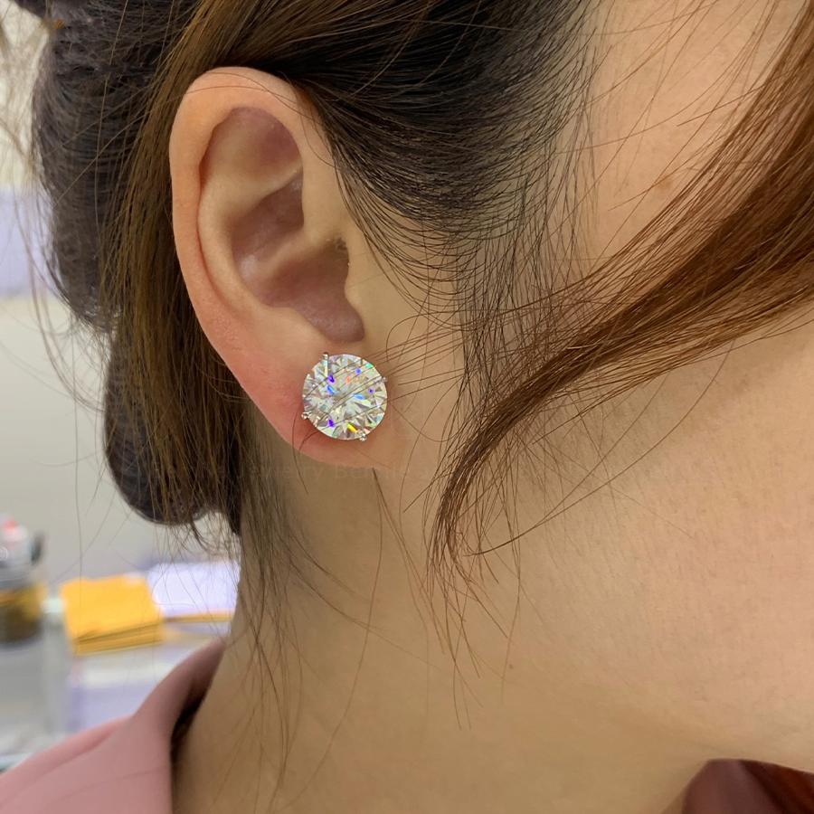 Đôi bông tai kim cương Moissanite Tròn Round Stub Classic mang phong cách cổ điển, chưa bao giờ hết hot và lỗi thời được Bemiie Jewelry chạm trổ từng góc cạnh một cách tỉ mỉ và tinh tế.