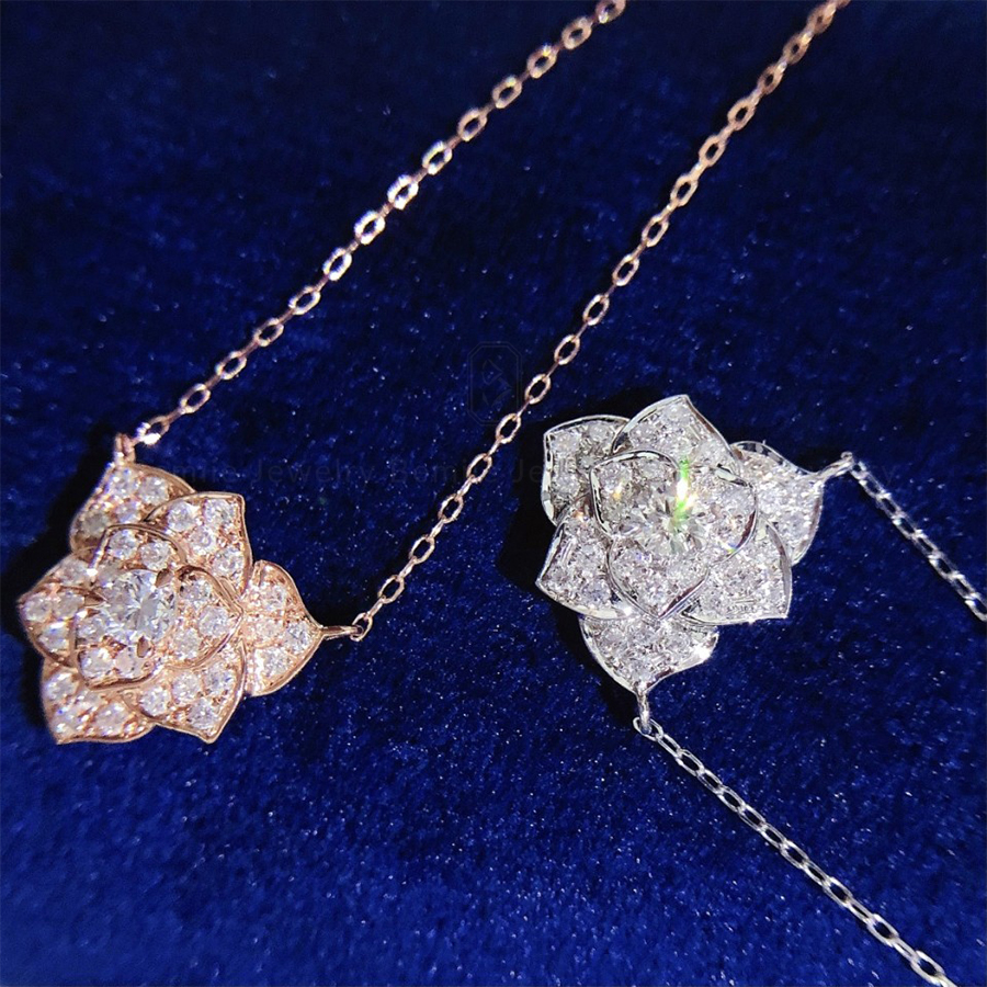 Tất cả các chi tiết thiết kế chỉn chu, chế tác công phu hoàn toàn thủ công, tạo nên một kiệt tác Dây Chuyền Kim Cương Tự Nhiên Hoa Hồng 18K hoàn hảo, tráng lệ, giữ trọn sức cuốn hút tuyệt đối. Hoa hồng là loài hoa dành riêng cho tình yêu thiêng liêng, bởi vậy, một món quà ý nghĩa với sợi dây chuyền hay chiếc nhẫn hoa hồng sẽ khiến cho người nhận thêm bất ngờ và thêm yêu món trang sức kim cương vĩnh cửu theo năm tháng này.