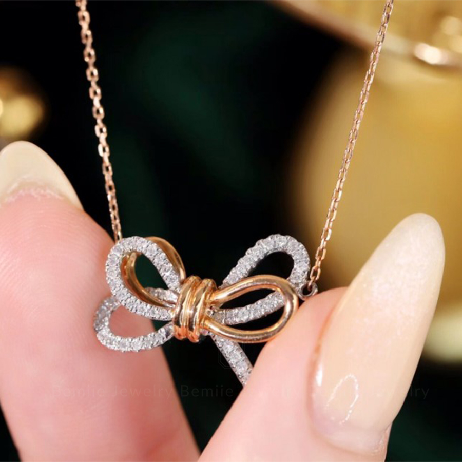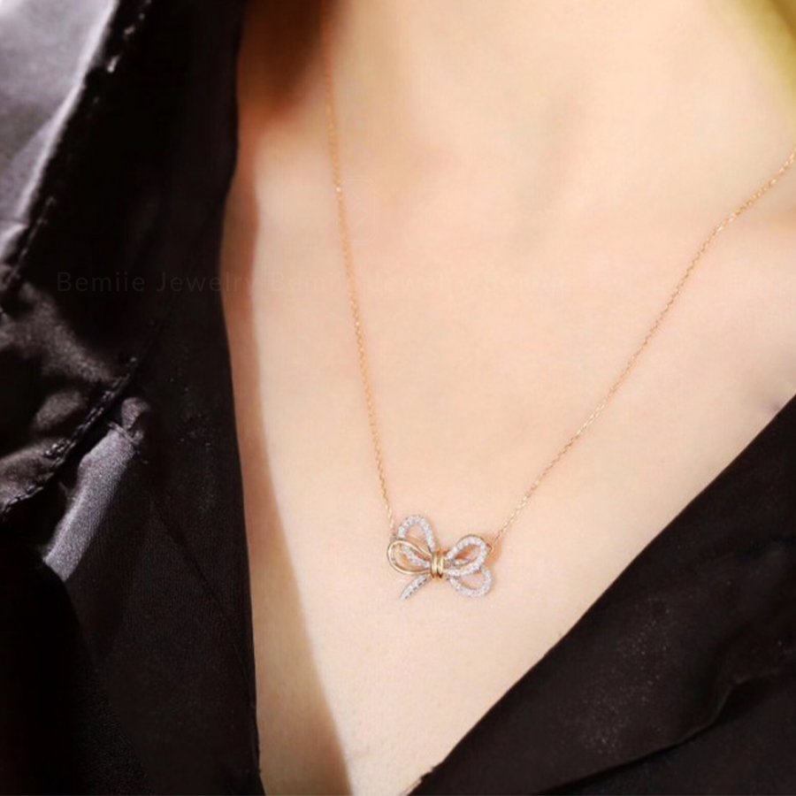 Dây Chuyền Kim Cương Tự Nhiên Sweet Knot 18K NBDWHRS18K005