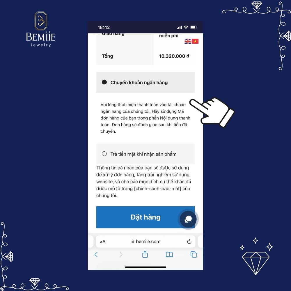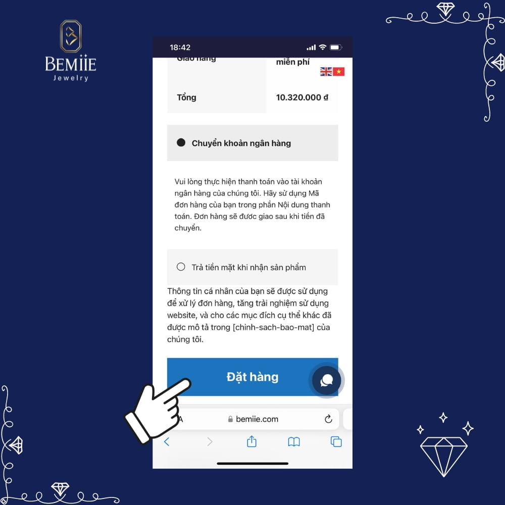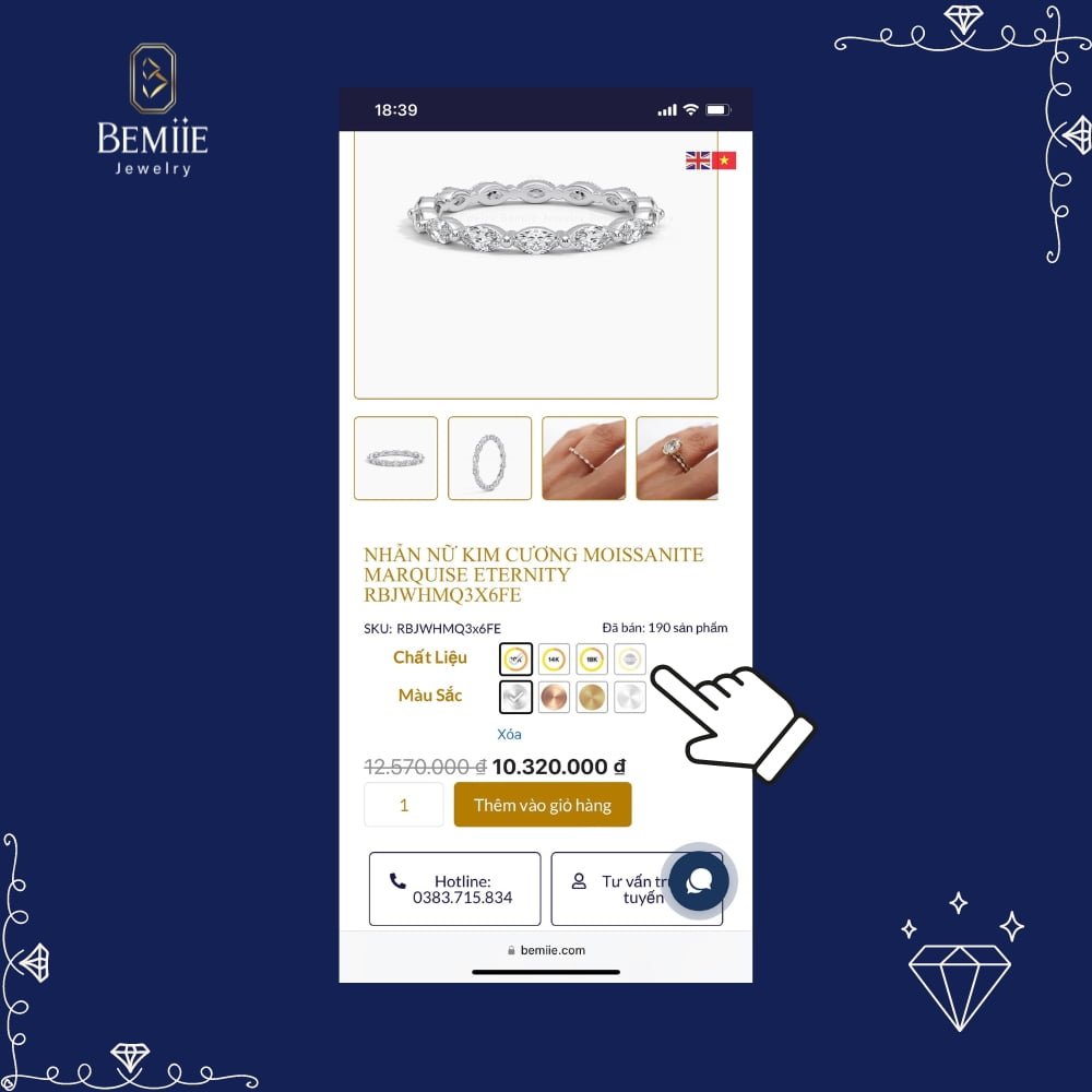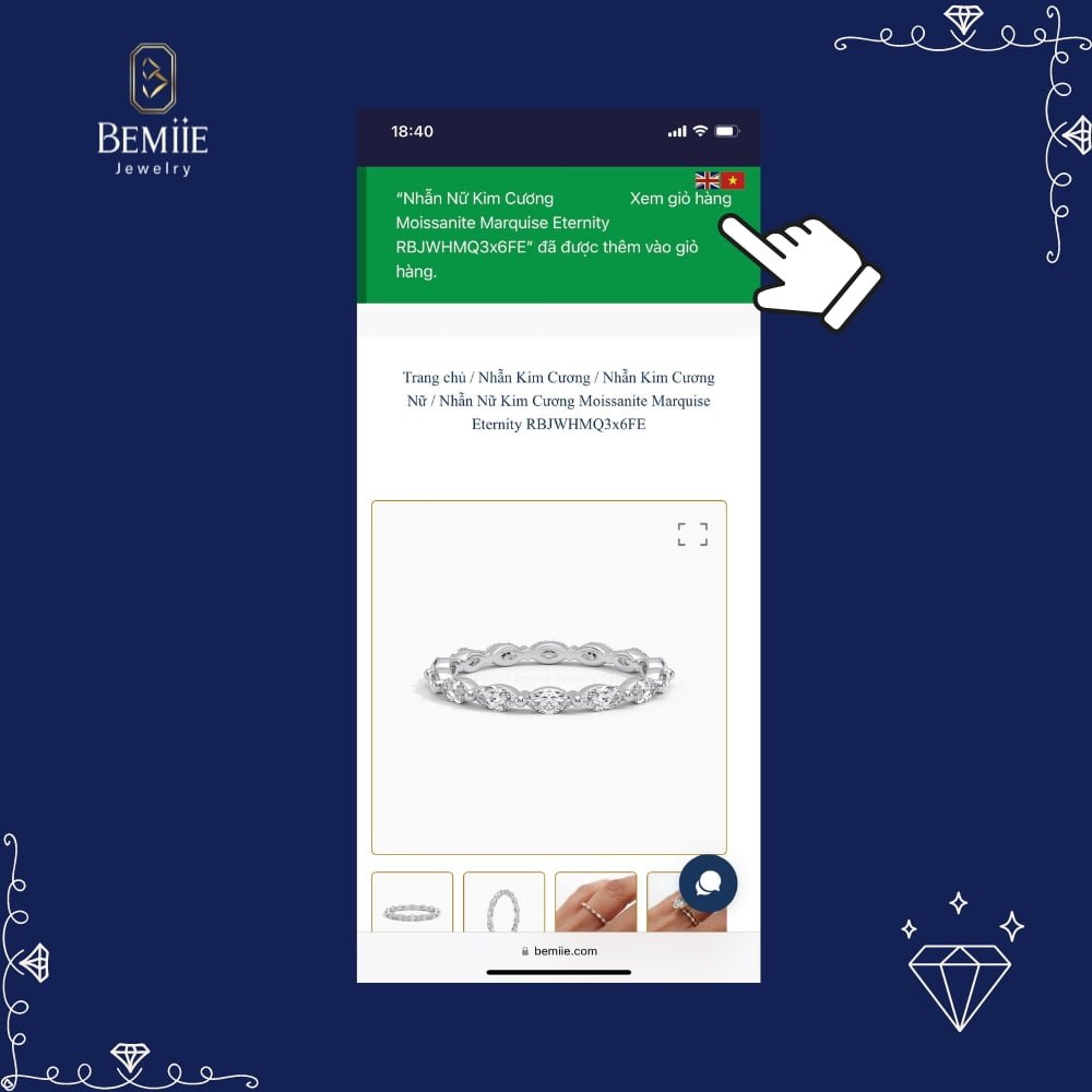 Quý khách hàng có thể truy cập vào fanpage chính thức: Bemiie Jewelry – Trang Sức Kim Cương. Đội ngũ chuyên viên tư vấn tại Fanpage Bemiie Jewelry luôn sẵn sàng tư vấn và hỗ trợ quý khách đặt hàng nhanh chóng.