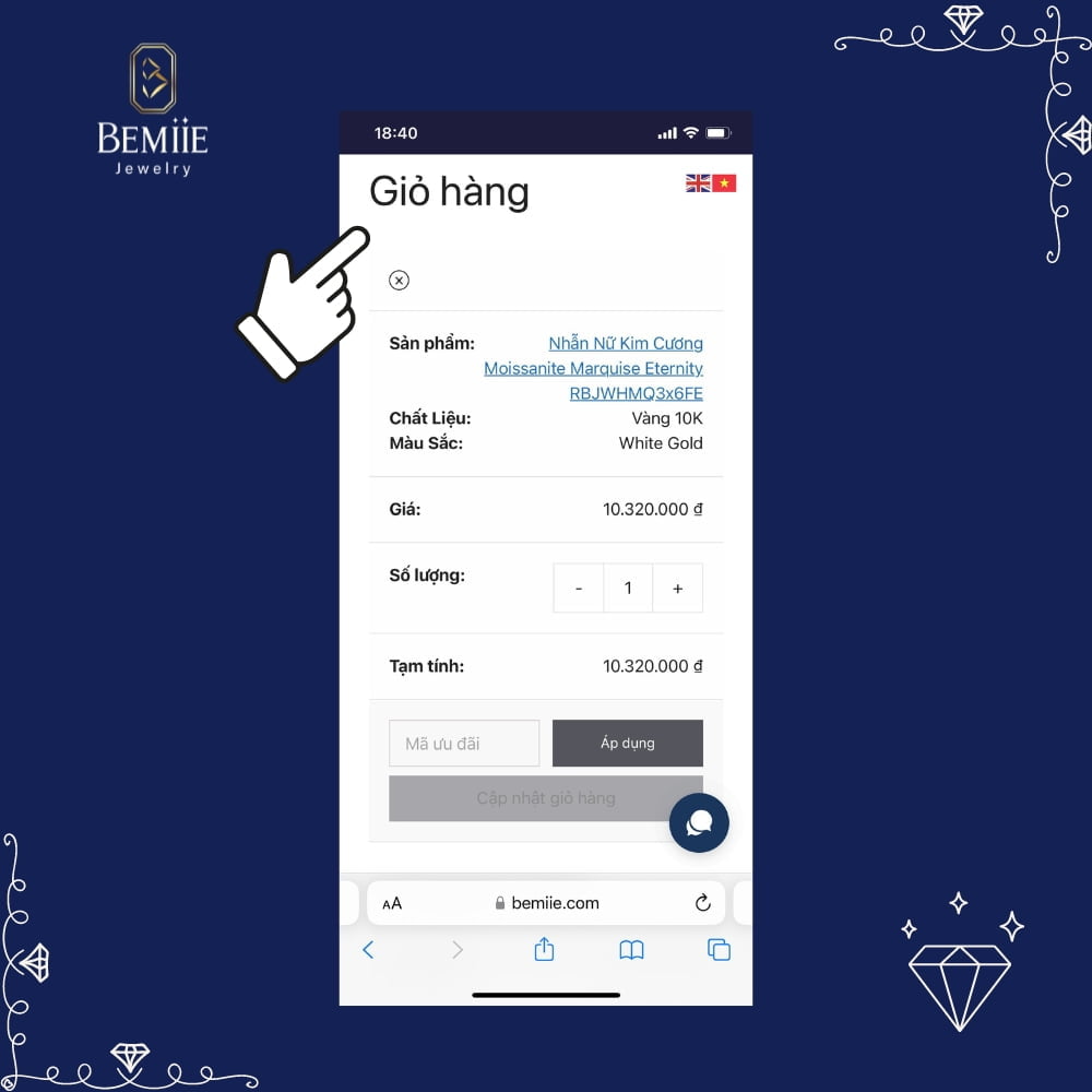 Hoặc quý khách có thể liên hệ với chuyên viên tư vấn tại Zalo theo hotline: (+84)838715834 – Ms Huyền Bemiie Jewelry để được tư vấn và hỗ trợ đặt hàng nhanh chóng.
