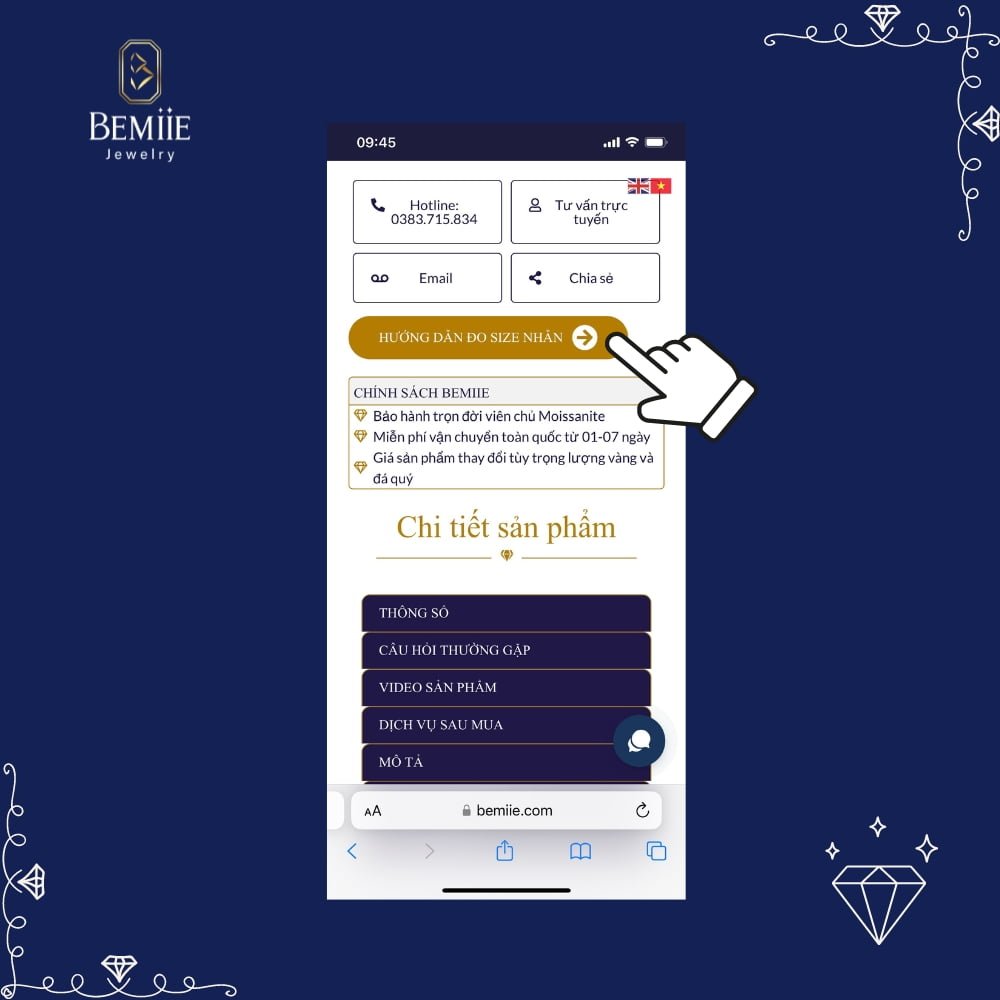 Trường hợp quý khách chưa chọn được ni, size phù hợp, đừng lo đã Hướng dẫn chi tiết đo kích cỡ từ Bemiie Jewelry