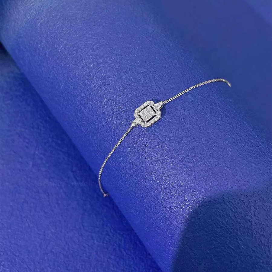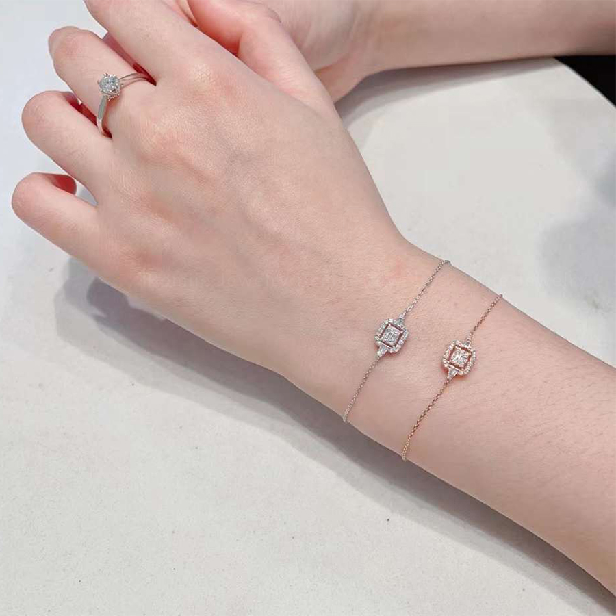 Lắc Tay Nữ Kim Cương Tự Nhiên Hình Chữ Nhật 18K tại Bemiie Jewelry