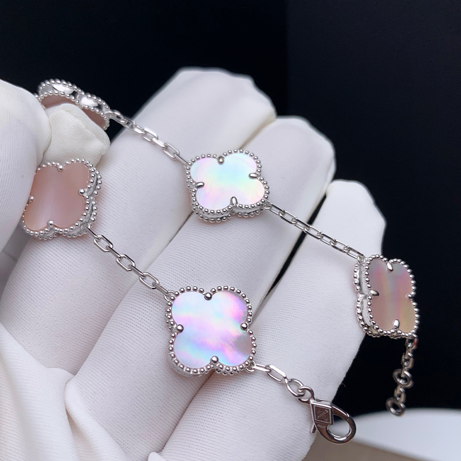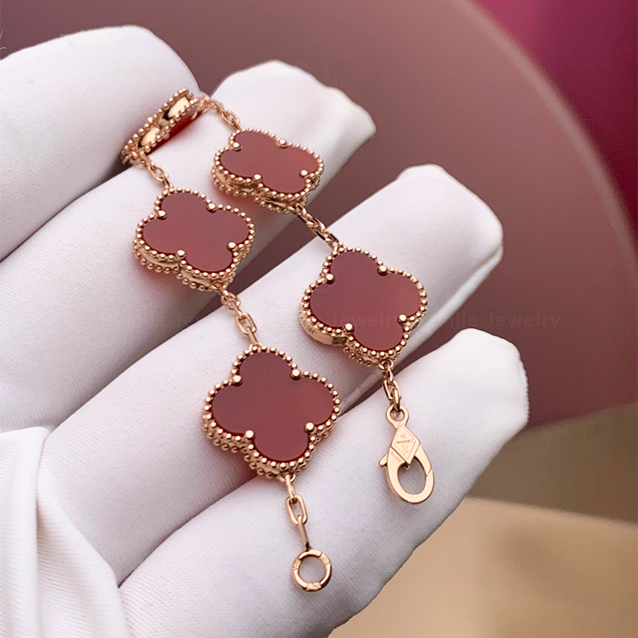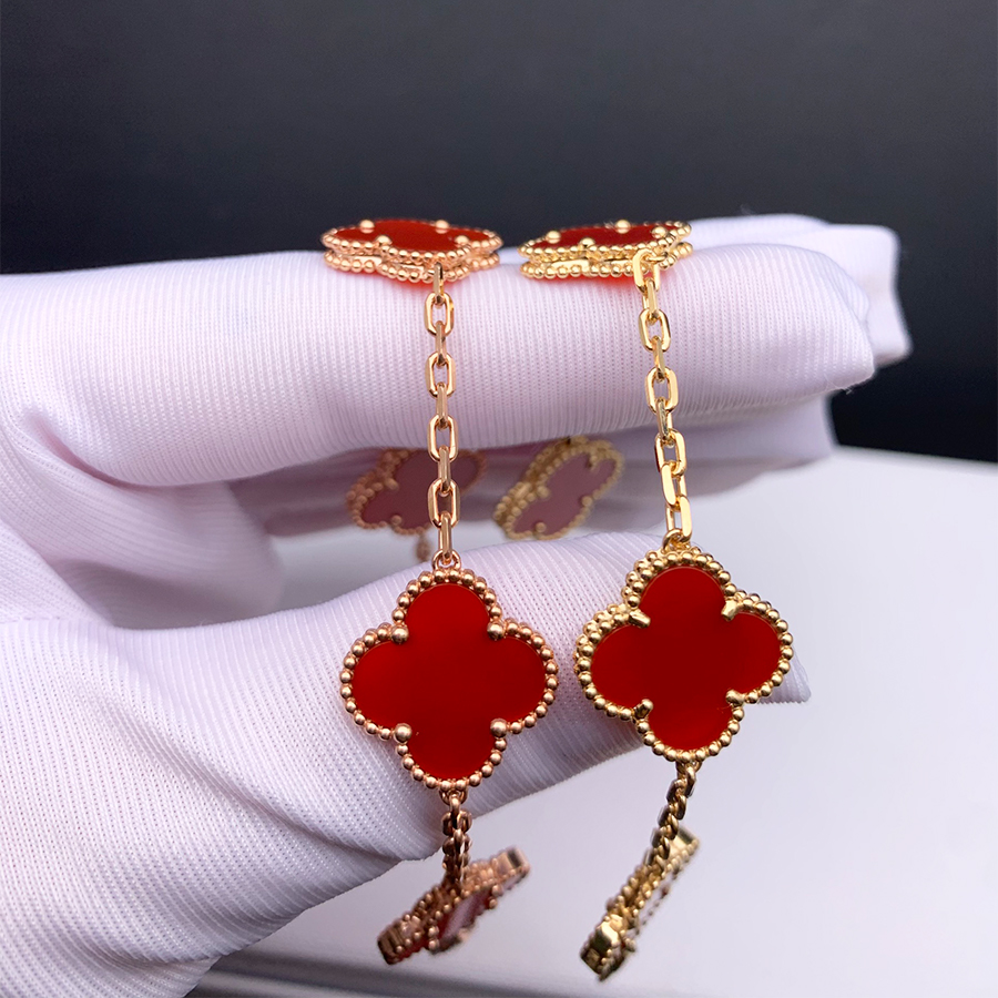 Chiếc lắc tay được chạm trổ tinh xảo từ các viên đá tự nhiên, chế tác tỉ mỉ trên kim loại vàng 18K quý giá. Lắc Tay Vintage Alhambra 5 Motifs 15mm 18K được chế tác với sắc màu đa dạng từ các viên đá quý tự nhiên, mang theo tinh hoa của đất trời, gửi tới nguồn năng lượng phong thủy mạnh mẽ, tương hỗ cho sự thành công của chủ nhân.