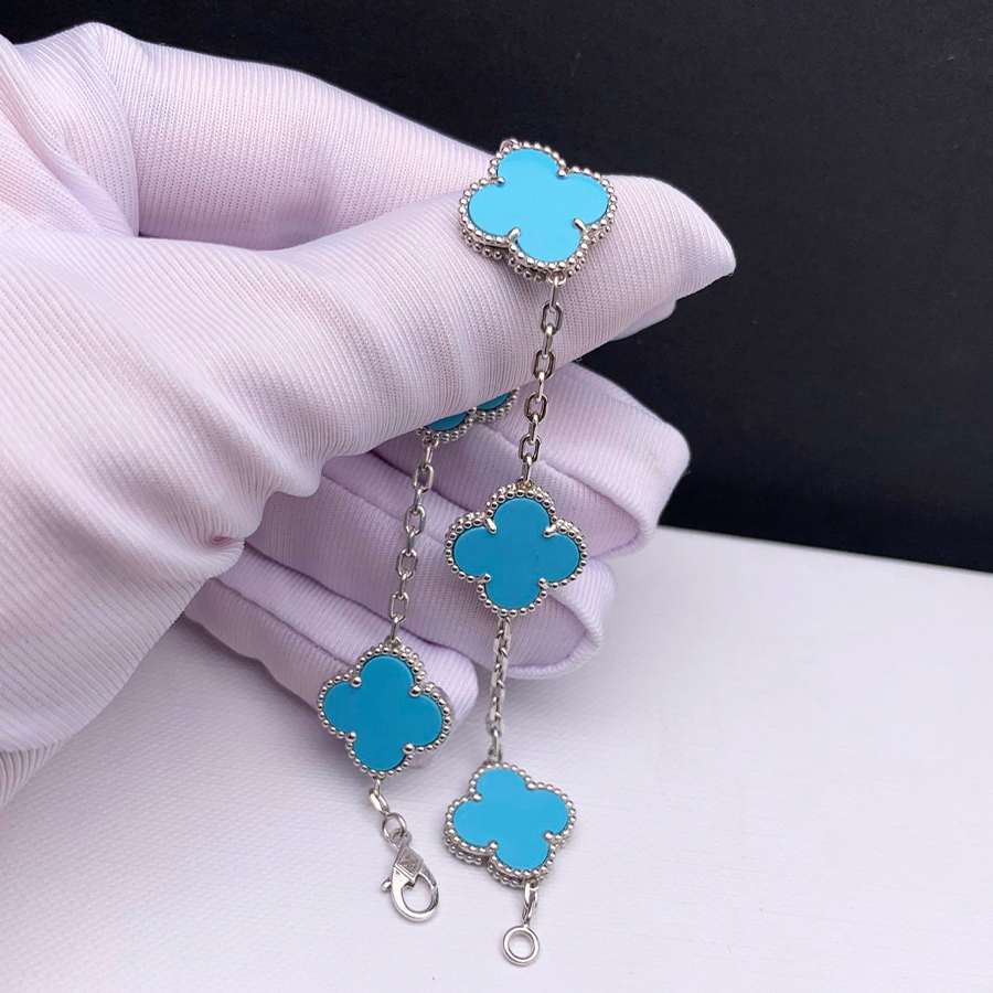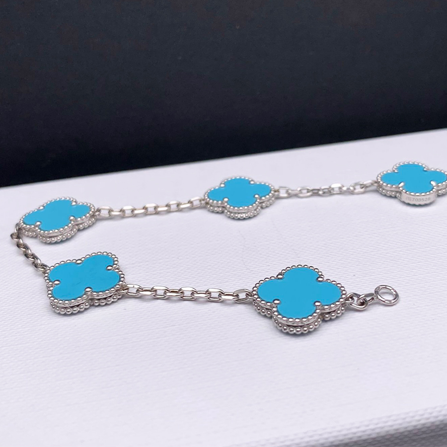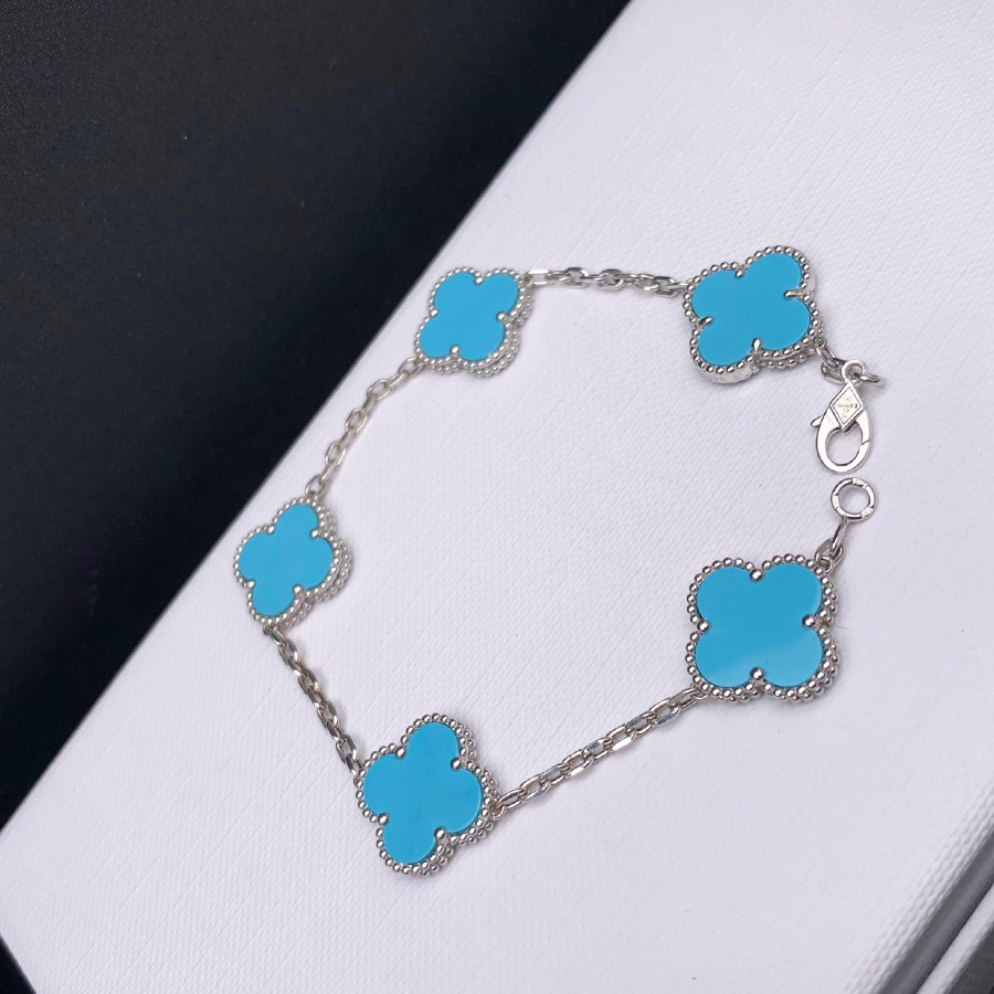 Lắc tay Vintage Alhambra Turquoise 5 motifs 15mm 18K BBD006-VCA