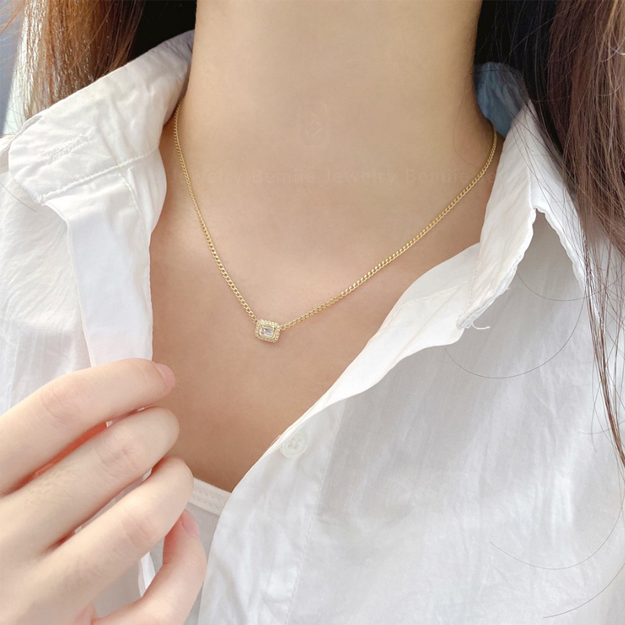 Mặt Dây Chuyền Kim Cương Moissanite Emerald Halo sở hữu sự nhẹ nhàng, nữ tính được Bemiie thiết kế theo phong cách Halo với viên kim cương Moissanite Emerald trong trẻo, đậm chất Tây thời thượng và vòng Halo được bao quanh viên chủ tạo nên sự cộng hưởng lấp lánh diệu kỳ. Chất liệu vàng quý giá và bền bỉ được làm nguyên liệu chế tác, giúp chủ nhân tự tin lan tỏa khí chất kim cương.