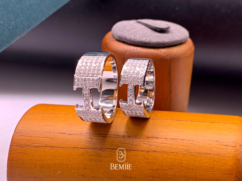 Cặp nhẫn cưới hiện đại chữ H được thiết kế riêng biệt tại Bemiie Jewelry