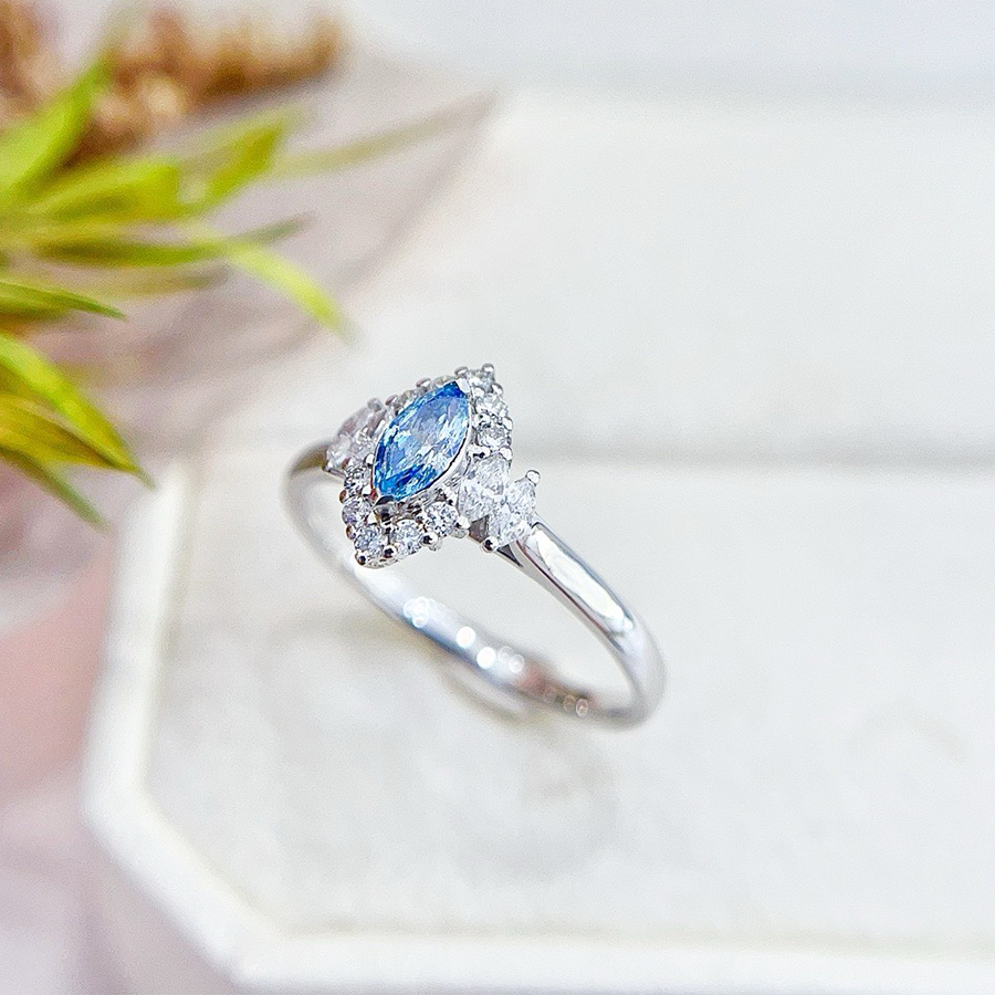 Bemiie Jewelry sẽ đồng hành để giúp bạn cá nhân hóa chiếc Nhẫn Cầu Hôn Kim Cương Tự Nhiên Petite Blue Marquise 18K theo sở thích của riêng bạn.