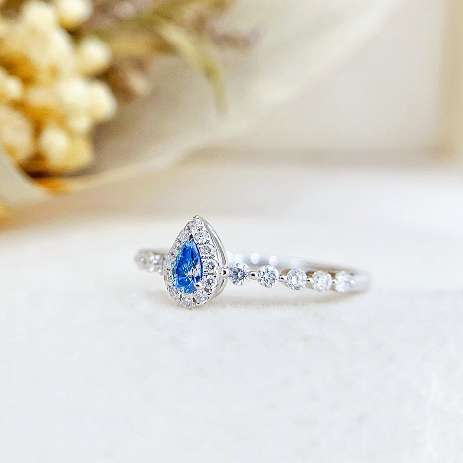 Nhẫn Cầu Hôn Kim Cương Tự Nhiên Petite Pear Halo 18K nằm trong bộ sưu tập “Petite” được thiết kế minimize theo phong cách Halo thanh lịch với điểm nhấn là viên chủ Pear xanh – hình giọt nước tráng lệ, nữ tính và bao quanh là vầng hào quanh Halo với kim cương tấm lấp lánh.