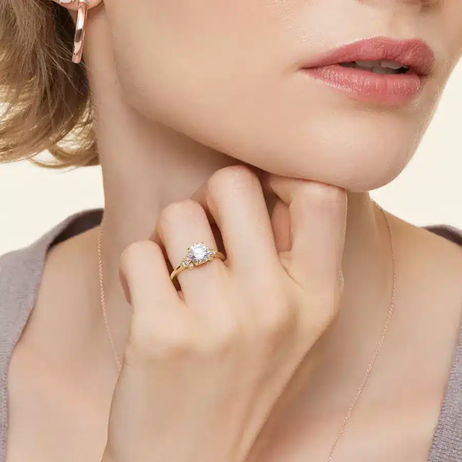 Nhẫn Cầu Hôn Lotus Aroma Nature Inspired nằm trong bộ sưu tập Nature Inspired, Bemiie đã khắc họa lại bông hoa sen thanh cao, đằm thắm – nét đẹp dịu dàng của người con gái Á Đông. Bông hoa sen nở nộ, mang hương sắc lan tỏa khắp muôn nơi với sức lôi cuốn của viên kim cương Moissanite Round Brilliant.
