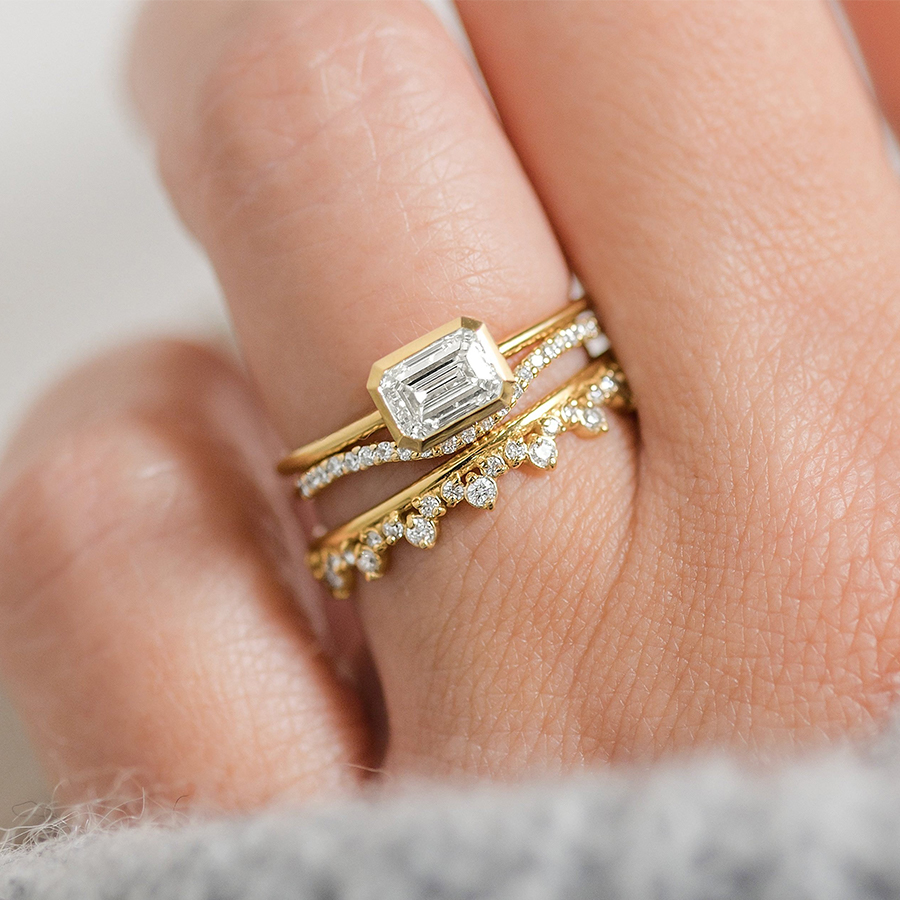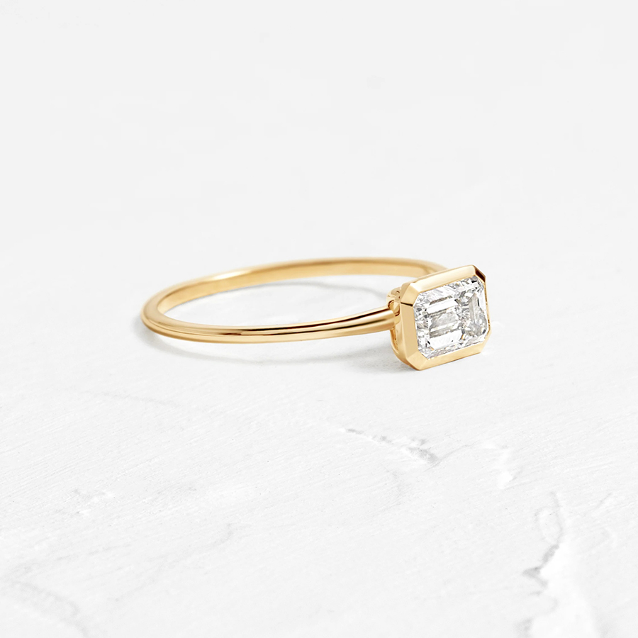 Nhẫn cầu hôn Petite East-West Emerald Solitaire Bezel – ERBJ055