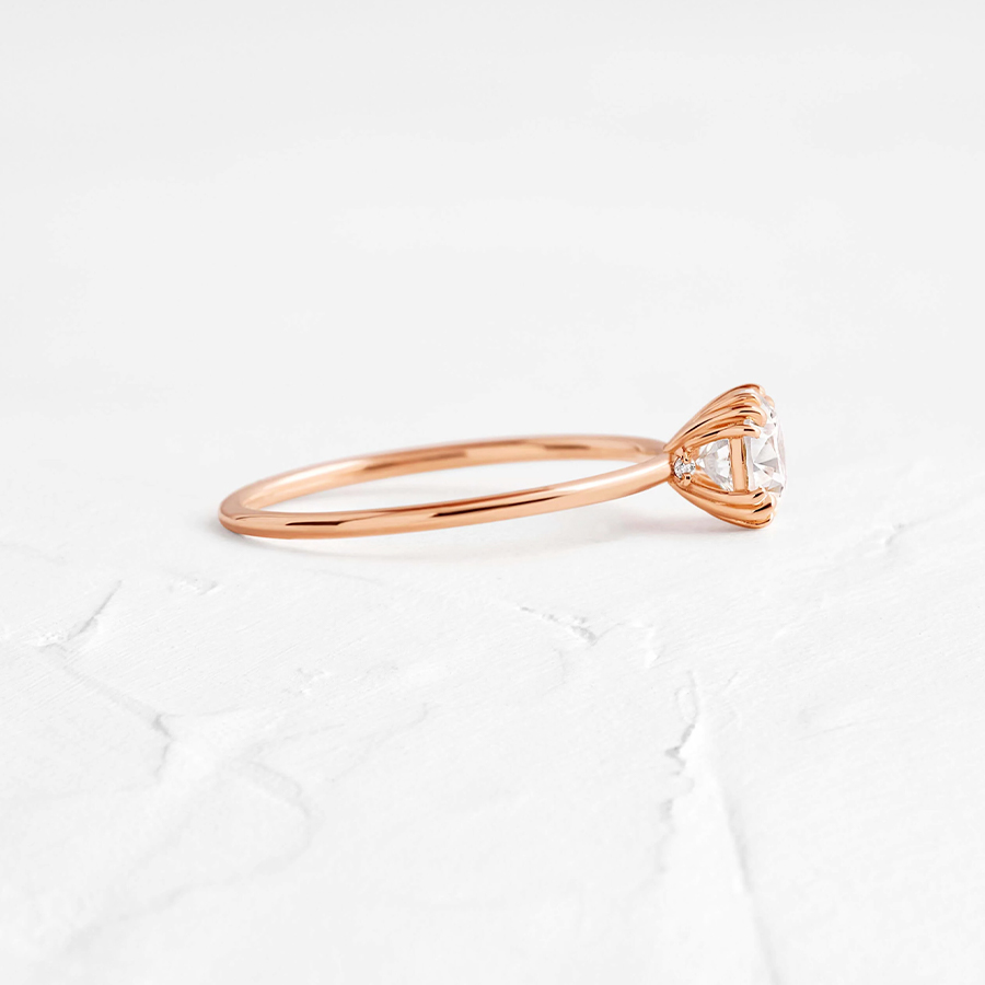 Chiếc nhẫn cầu hôn Petite Nestled nằm trong bộ sưu tập Petite – có nghĩa là Nhỏ xinh, được Bemiie Jewelry thiết kế với viên Round Brilliant ở trung tâm làm điểm nhấn ấn tượng. Đai nhẫn trơn cổ điển, thiết kế chấu đặc biệt với triple prongs chắc chắn, đậm chất cổ điển.