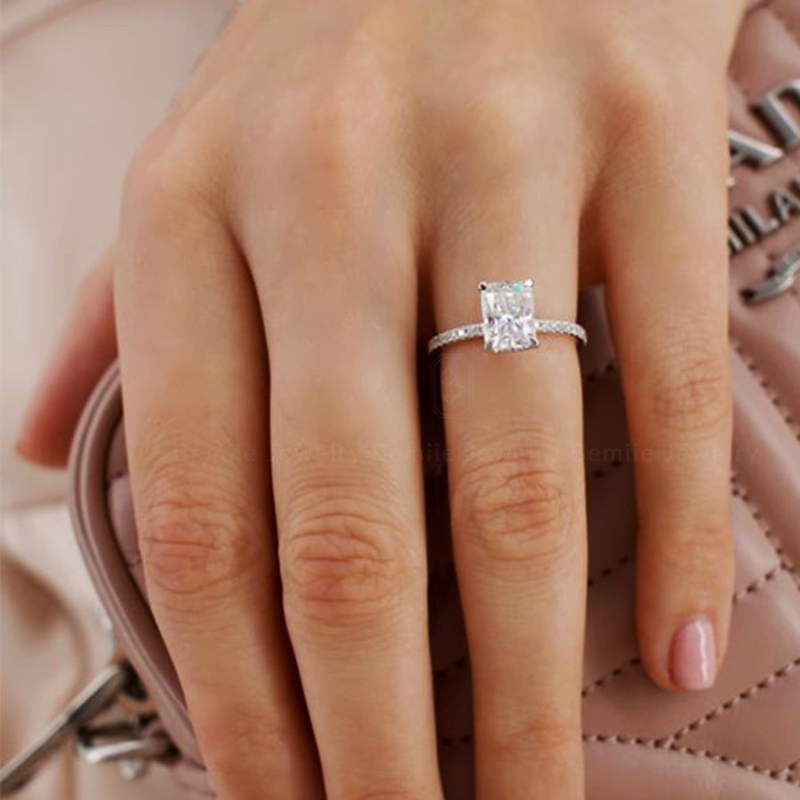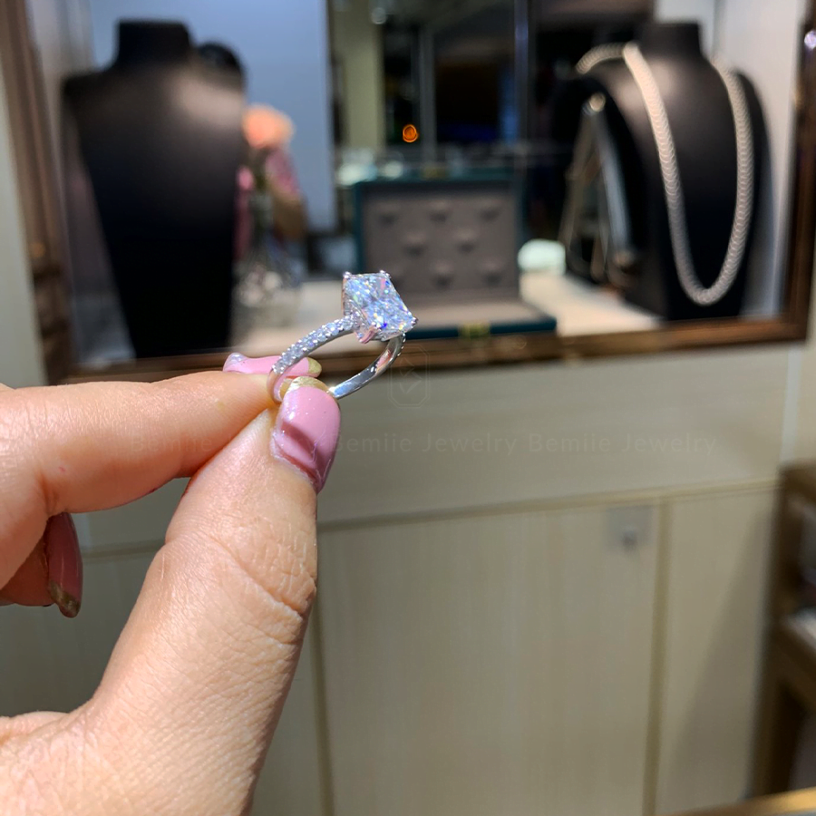 Nhẫn Cầu Hôn Radiant Hidden Halo được thiết kế bởi Bemiie Jewelry