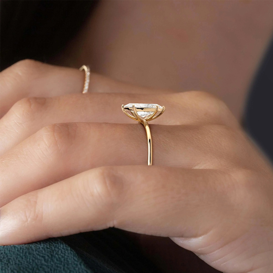 Chiếc nhẫn cầu hôn Solitaire Petite Whisper nằm trong bộ sưu tập Petite – có nghĩa là Nhỏ xinh, được Bemiie Jewelry thiết kế theo phong cách Solitaire kinh điển với viên Marquise ở trung tâm làm điểm nhấn ấn tượng. Chiếc nhẫn cầu hôn nhẹ nhàng với viên chủ Marquise giúp bàn tay nàng thêm thon gọn, thuôn dài hơn, hay nàng hoàn toàn có thể bắt cặp với chiếc nhẫn khác thể hiện cá tính.