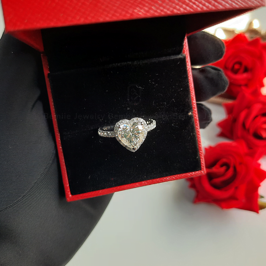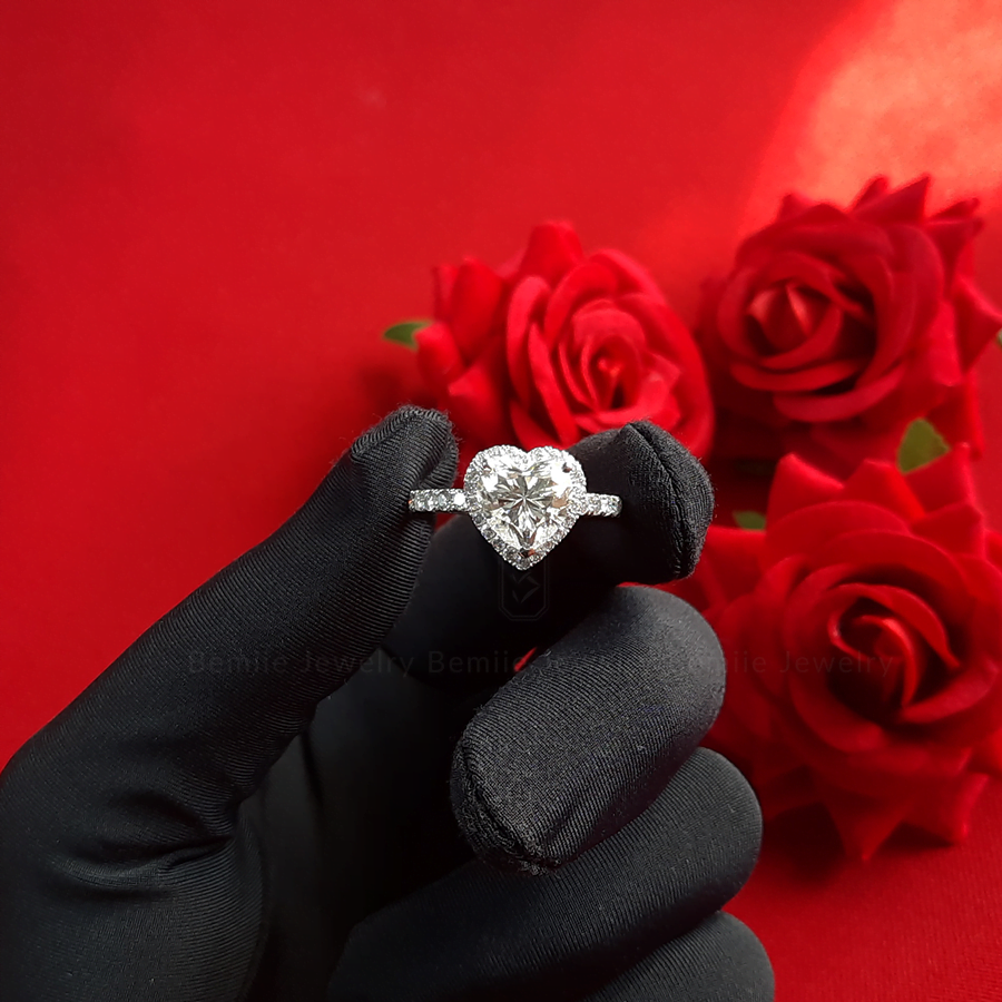 Nhẫn Nữ Kim Cương Moissanite Heart Halo Pave được thiết kế bởi Bemiie Jewelry