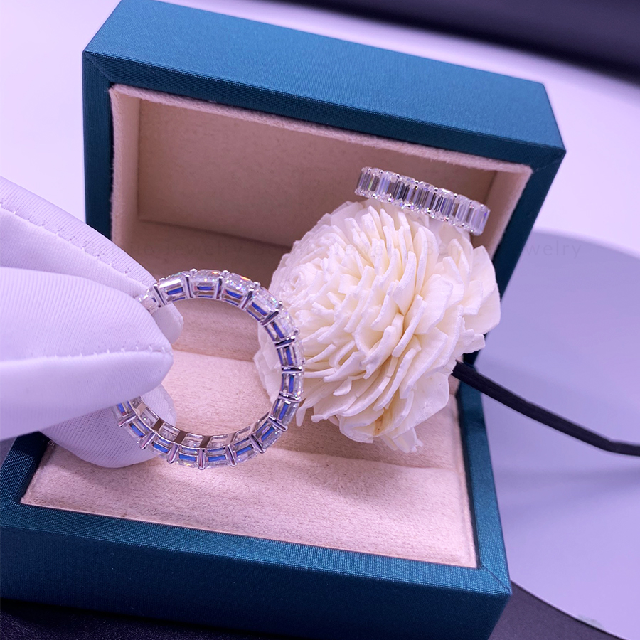 Nhẫn Cưới Emerald Eternity Band là biểu tượng cho sự bền vững, sự cam kết không thay đổi trong tình yêu. Với thiết kế vòng tròn eternity band kết hợp cùng Moissanite Emerald hiện đại được đính trải dài quanh bề mặt nhẫn, giúp tạo nên vẻ đẹp đồng đều và hoàn hảo từ mọi góc nhìn.