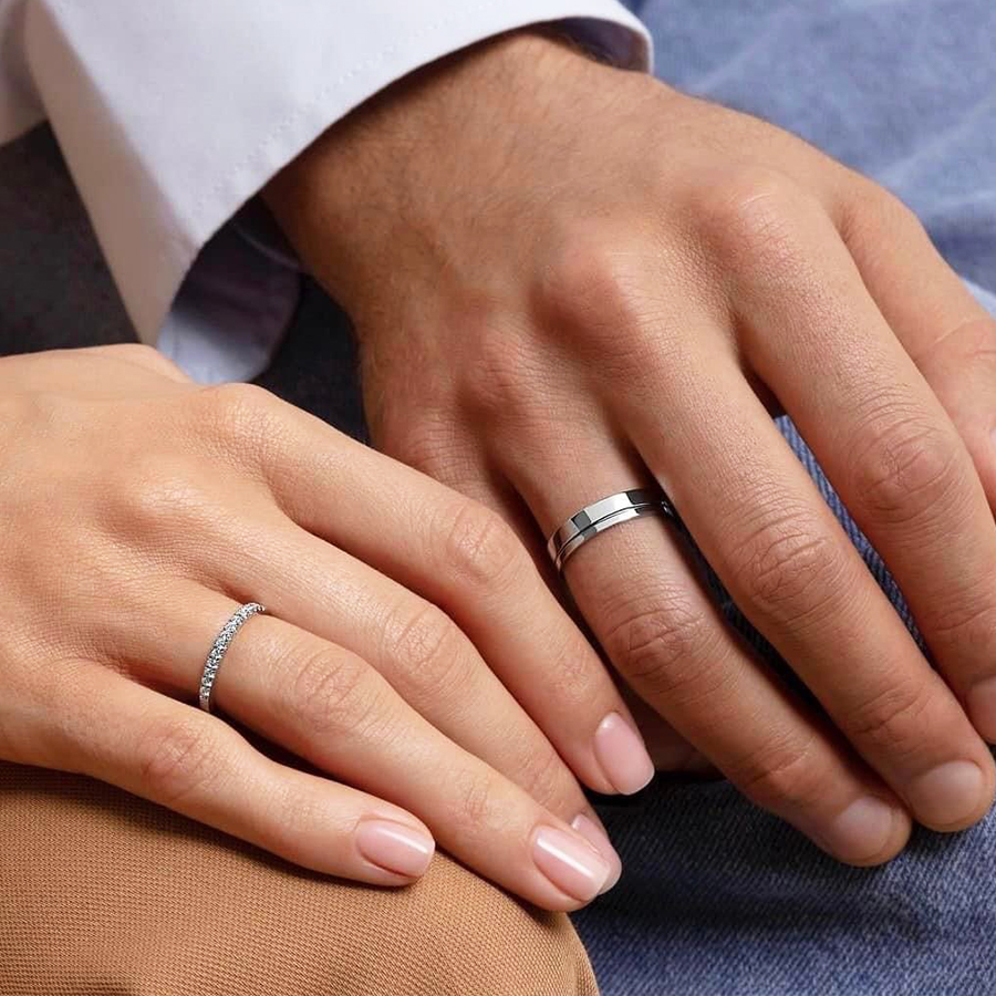 Cặp nhẫn cưới Eternity Be Apart là sự kết hợp giữa nhẫn cưới nam trơn sang trọng với lớp finishing sáng bóng, sang trọng của vàng và nhẫn cưới nữ mang phong cách Eternity hay được gọi là chiếc nhẫn vĩnh cửu.