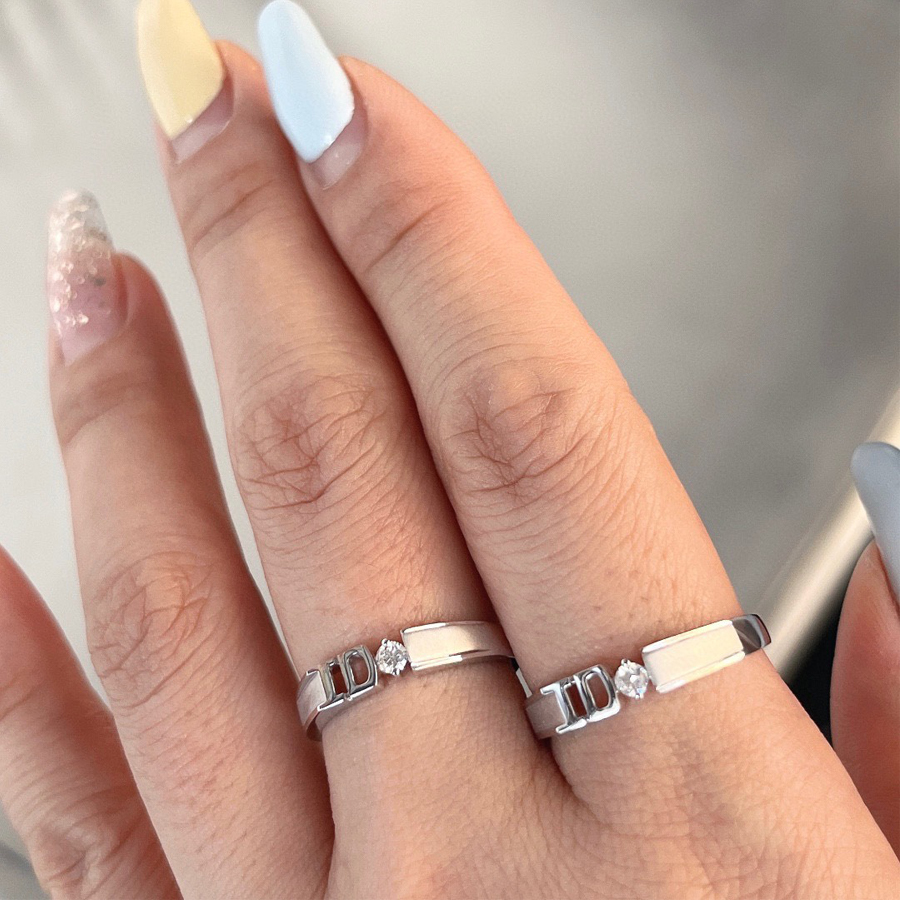 Cặp nhẫn cưới kim cương tự nhiên Our Secret Signature 18K thiết kế với kiểu dáng unisex hiện đại, cá tính, chạm trổ chữ “ID” mang ý nghĩa về một mối quan hệ đã được xác nhận và chính thức. “ID” có nghĩa là Identification – sự chứng thực của mối quan hệ vợ chồng và Identical – sự đồng nhất, đồng lòng của 2 người trong gia đình nhỏ.