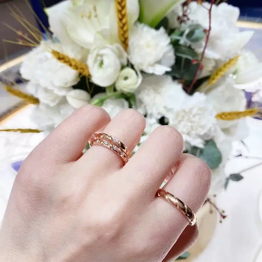 Bemiie Jewelry sẽ đồng hành để giúp bạn cá nhân hóa Cặp Nhẫn Cưới Kim Cương Tự Nhiên Torsade 18K theo sở thích của riêng bạn.