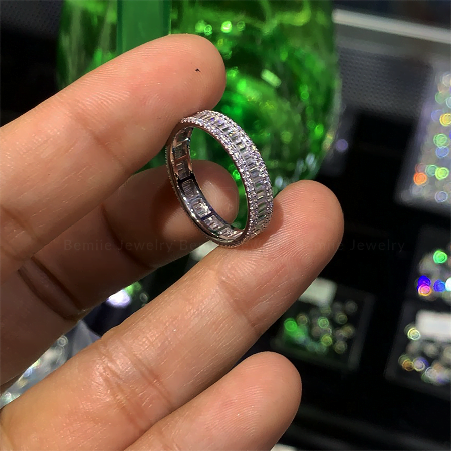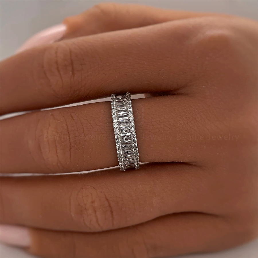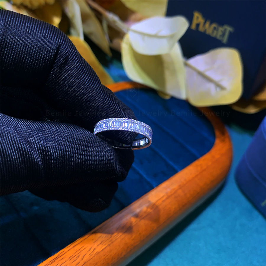 Chiếc nhẫn nữ Baguette Eternity Band được Bemiie Jewelry thiết kế từ những viên Moissanite giác cắt Baguette – sự hòa hợp giữa Emerald và Radiant chữ nhật đem nguồn cảm hứng tinh tế bất tận.