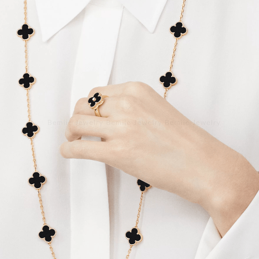 Nhẫn Nữ Cỏ Bốn Lá Vintage Alhambra 1 Diamond 18K Onyx – Yellow Gold tại Bemiie Jewelry