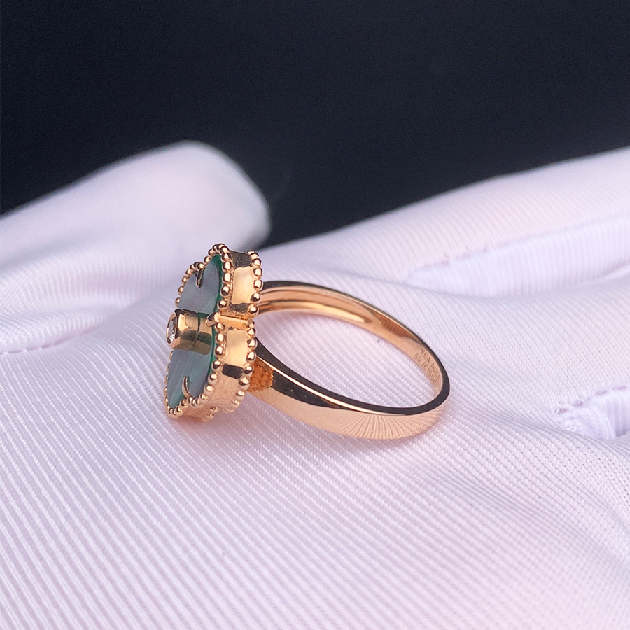 Nhẫn Nữ Cỏ Bốn Lá Vintage Alhambra 1 Diamond 18K được lấy cảm hứng từ chiếc lá cỏ bốn lá – biểu tượng may mắn này được trang trí bằng viền hạt vàng sang trọng, mang âm hưởng của tình yêu lãng mạn và vẻ đẹp thiên nhiên bất tận tới gần chủ nhân hơn bao giờ hết.