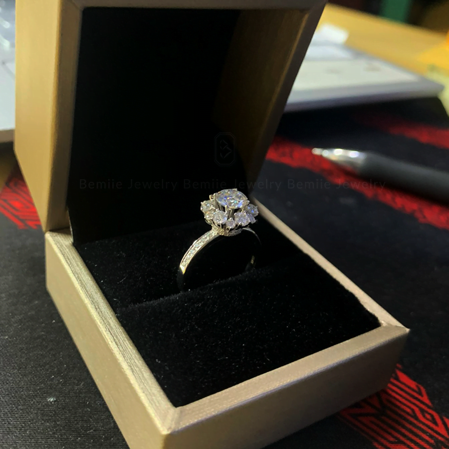 Bemiie Jewelry nhận đặt hàng theo mẫu hoặc yêu cầu của khách hàng với chất liệu bạch kim, vàng, bạc và kim cương tự nhiên, Lab Grown, Moissanie, ECZ và các loại đá quý khác. Tùy theo độ phức tạp của sản phẩm mà thời gian chế tác ước tính từ 5– 10 ngày làm việc. Quý khách liên hệ Hotline/ Zalo/ Viber/ Whatsapp: (+84) 838.715.834 hoặc Fanpage để được tư vấn cụ thể.