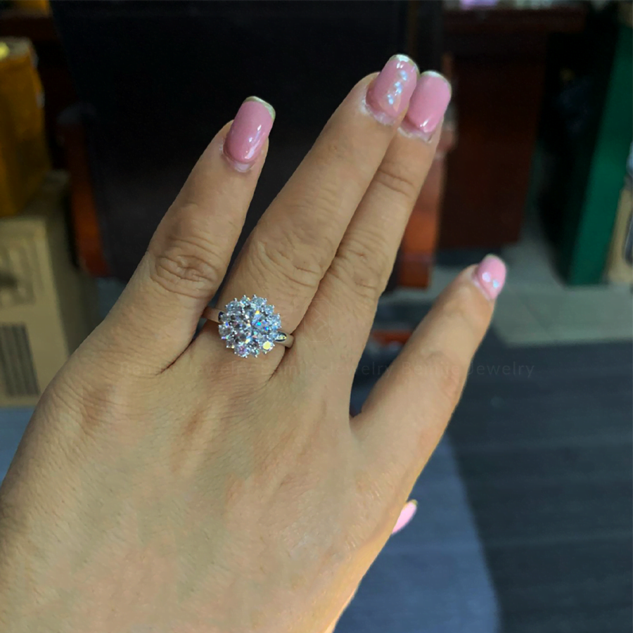 Một trong những lý do giúp mẫu nhẫn Halo được yêu mến chính là vẻ đẹp cổ điển vượt thời gian. Hơn thế nữa, kiểu nhẫn Halo cách điệu này giúp tôn dáng đôi bàn tay và tạo điểm nhấn với bông hoa cúc nở rộ.