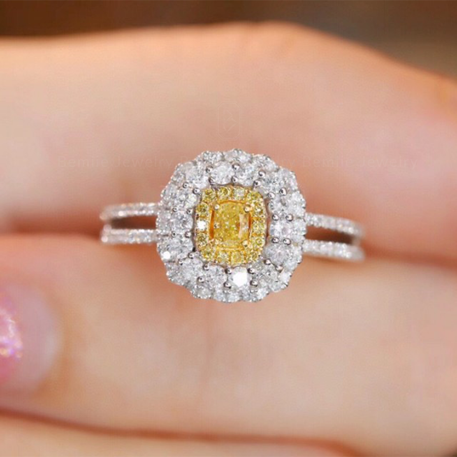 Bemiie Jewelry sẽ đồng hành để giúp bạn cá nhân hóa chiếc Nhẫn Nữ Kim Cương Tự Nhiên Fancy Double Halo 18K theo sở thích của riêng bạn.