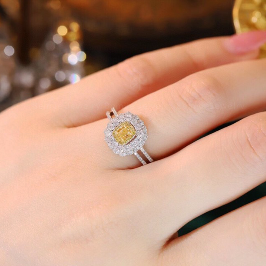 Ý tưởng cho chiếc nhẫn cầu hôn hay làm quà tặng thì chiếc Nhẫn Nữ Kim Cương Tự Nhiên Fancy Double Halo 18K quả là một lựa chọn hoàn hảo, thể hiện trọn vẹn tâm ý.