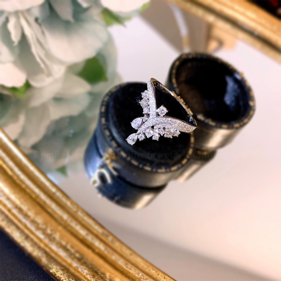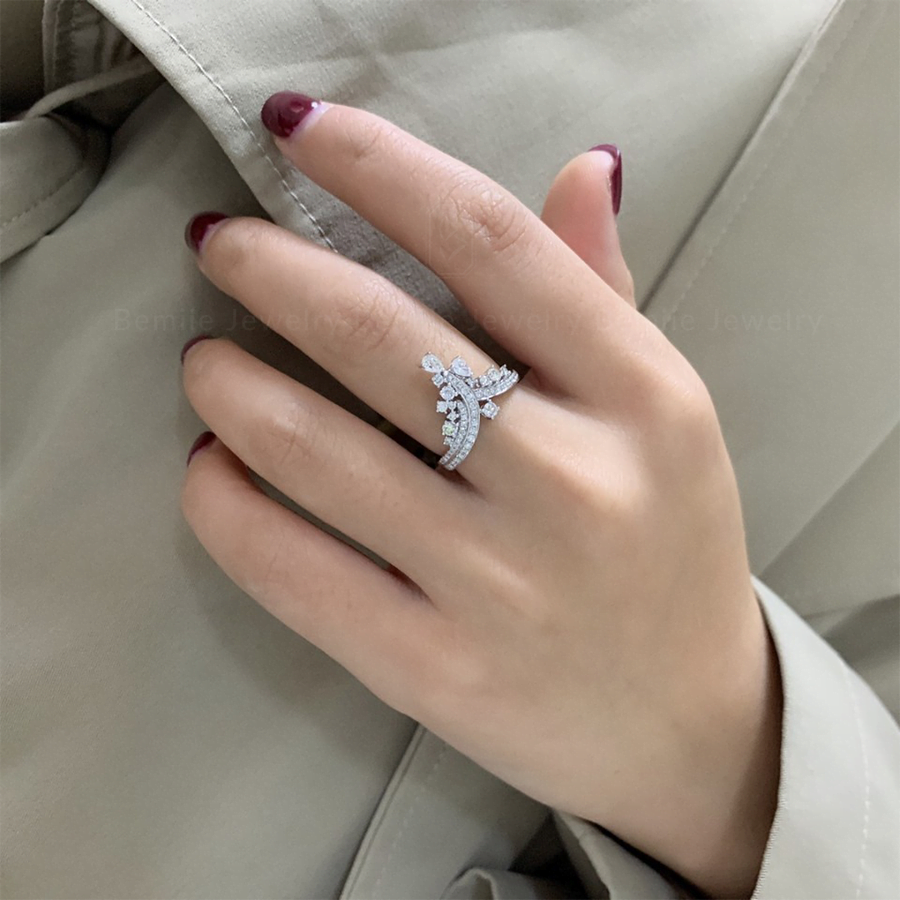 Nhẫn Nữ Kim Cương Tự Nhiên Pear Queen Crown 18K tại Bemiie Jewelry