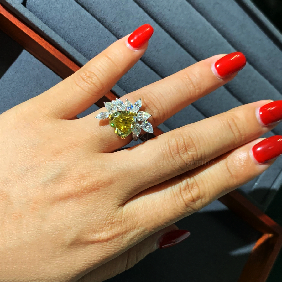 Phần cánh hoa được Bemiie Jewelry khéo léo phối hợp giữa giác cắt Marquise ( hình dáng hạt thóc) và Pear ( hình dáng giọt nước) tạo hiệu ứng nở nộ, lấp lánh nhất cho chiếc nhẫn.