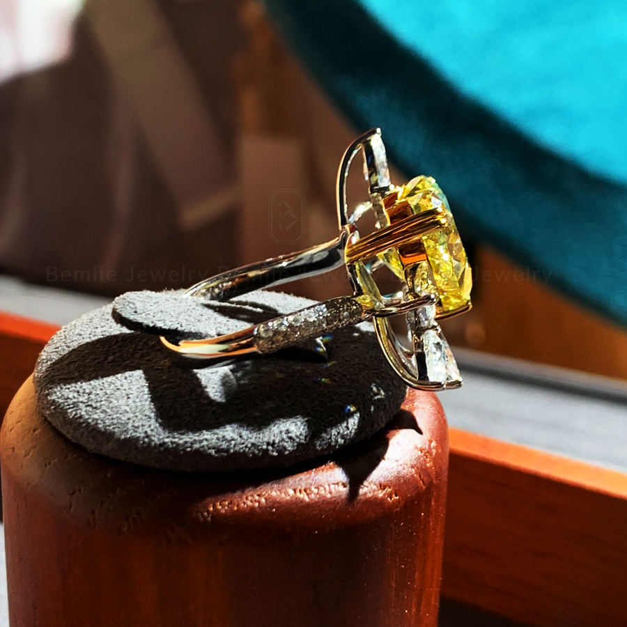 Phần cánh hoa được Bemiie Jewelry khéo léo phối hợp giữa giác cắt Marquise ( hình dáng hạt thóc) và Pear ( hình dáng giọt nước) tạo hiệu ứng nở nộ, lấp lánh nhất cho chiếc nhẫn.