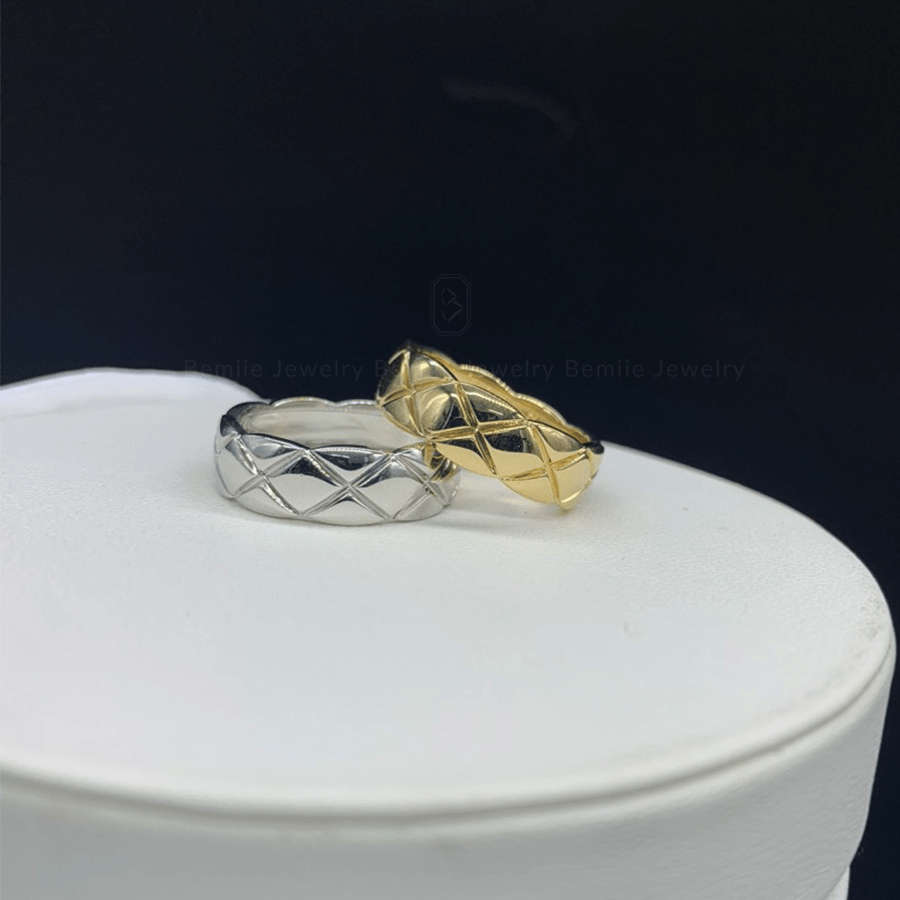 Nhẫn Cưới Họa Tiết Chần Quả Trám Cỡ Nhỏ 18K – WRBD-HK002-CHA