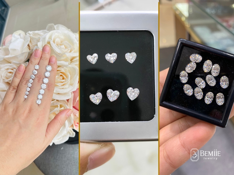 Với khả năng chế tác đá quý, Bemiie có đầy đủ các hình dạng giác cắt khác nhau, cùng vô vàn size, màu sắc cho bạn lựa chọn. Không còn lo ngại hay băn khoăn về kích thước, kiểu cắt nào sẽ phù hợp nhất khi đính lên nhẫn cưới, bạn có thể tới trực tiếp cửa hàng Bemiie để ướm thử và ngắm nhìn. Nếu bạn muốn đặt nhẫn cưới theo yêu cầu với kiểu dáng giác cắt độc lạ, đội ngũ thợ chế tác đá quý sẽ giúp bạn thực hiện mong ước.