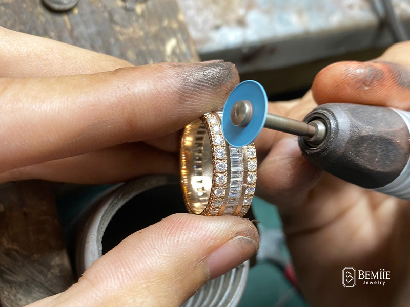 Chế tác thủ công chiếc nhẫn cưới nam tại xưởng kim hoàn Bemiie