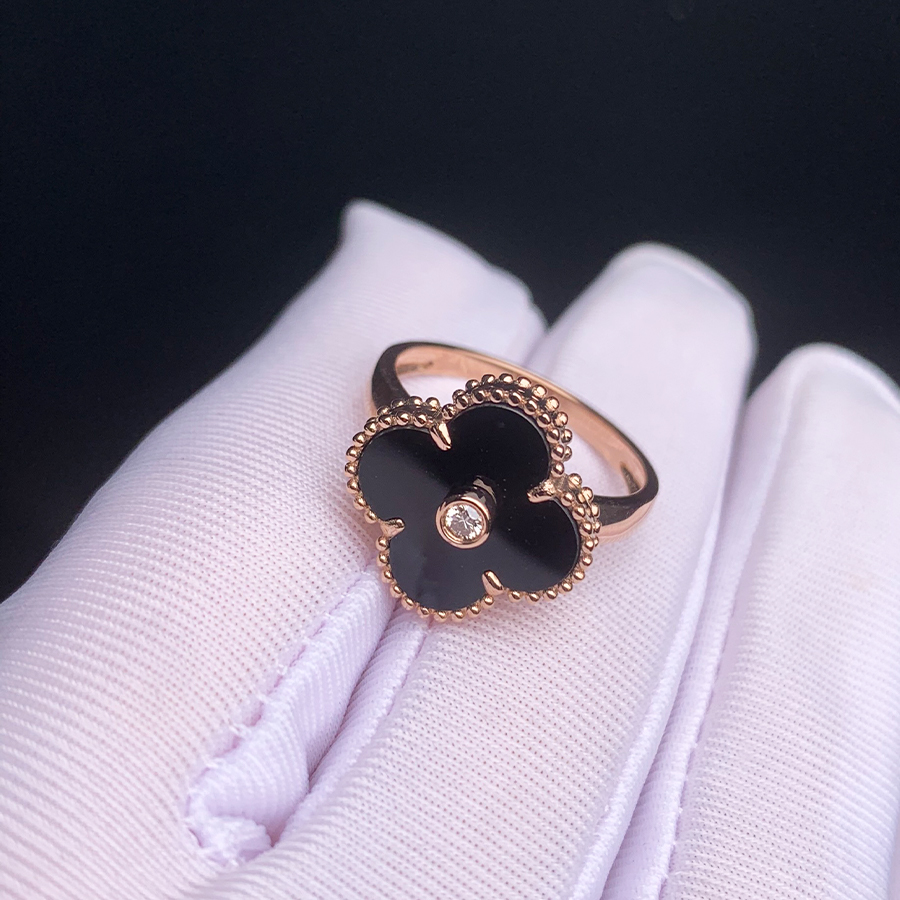 Nhẫn Nữ Cỏ Bốn Lá Vintage Alhambra 1 Diamond 18K RBD002-VCA